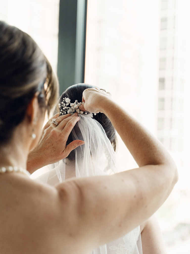 Both Chelsea and her sister Emily had their veil made from their mom’s wedding veil with the beautiful craftsmanship of Marie from Headpiece.com. As a surprise to her mom, Chelsea had Marie make a few pieces for her mom to wear as well.