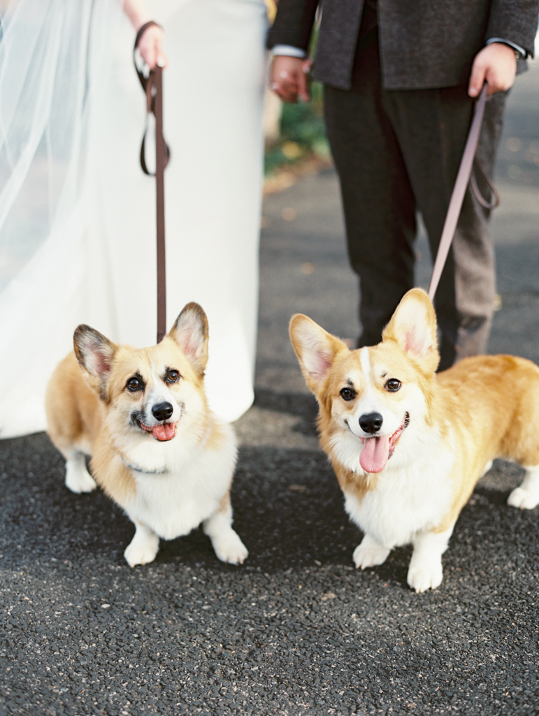 After a private first look on the rooftop of their hotel, we headed over to District Winery for portraits. Their two corgis, Waffles & Butters, joined us for some family photos. It was the part of the day that felt most like “them”, just being with each other and their dogs.